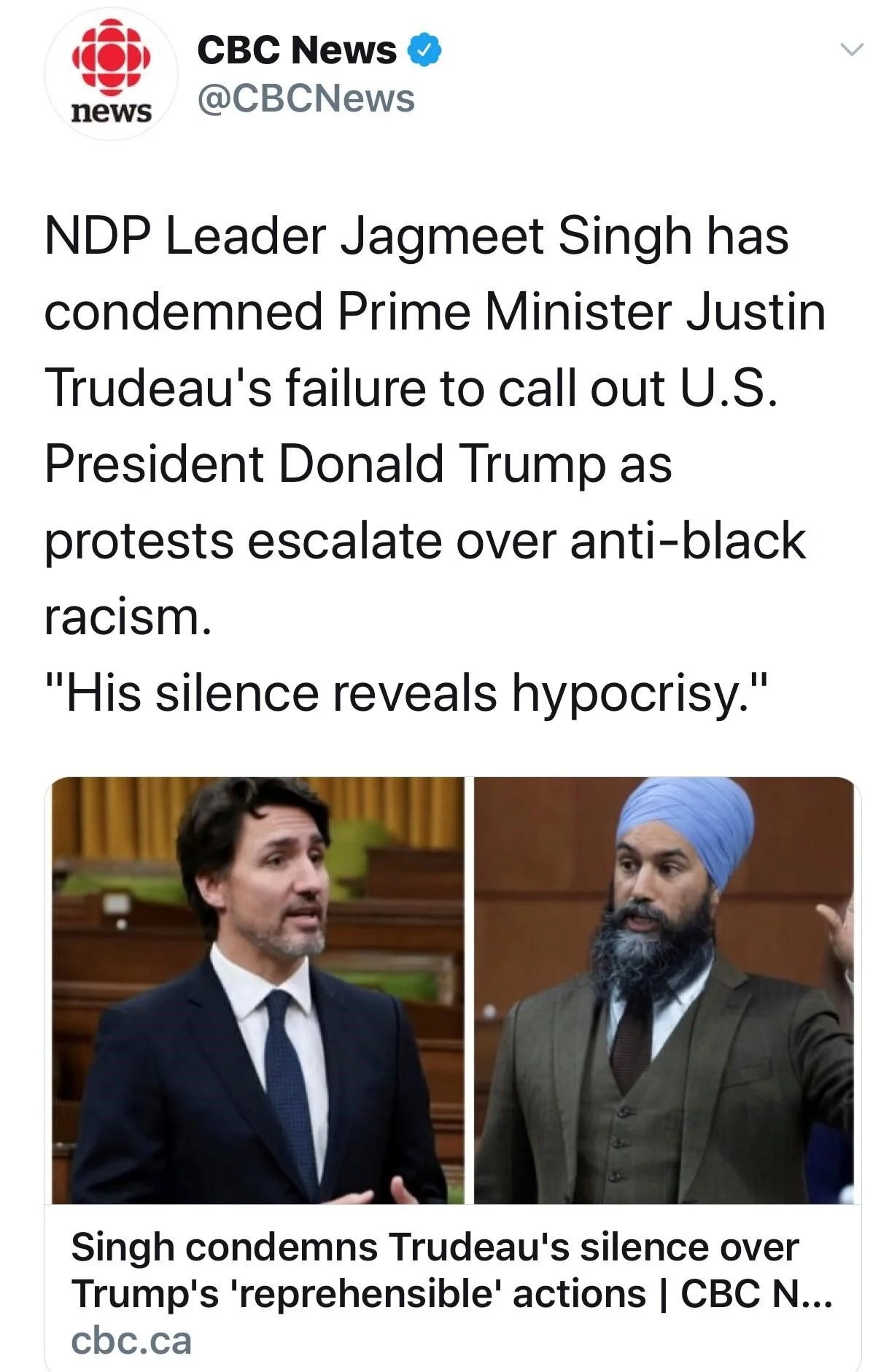 The NDP leader Jagmeet Singh also opposed Trudeau’s silence “revealing his hypocrisy.”