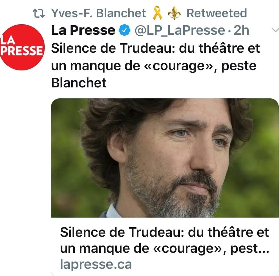 Bloc Québécois opposition leader Yves-François Blanchet was quoted in the Montreal press that Trudeau “lacks courage.”