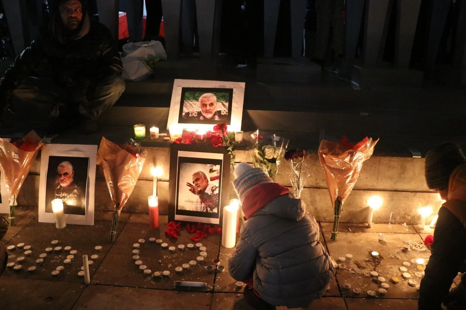 Men, women and children lit candles, swayed flags and carried placards in protest of Soleimani’s assassination.